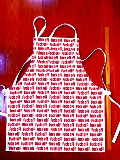 FUCK OFF エプロン(ホワイト・ボディ×赤プリント)初回割引4800円(通常価格5800円)