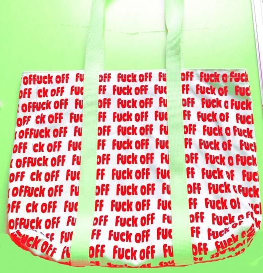 トートバッグ FUCK OFF 柄(白生地×赤プリント)