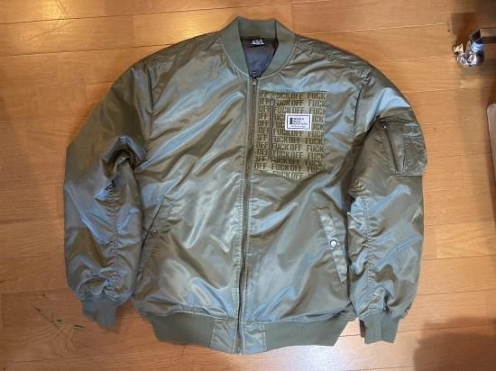 柳家商店オリヂナル!WWB(ワールド・ワイド・バスタード)のFUCKOFF柄ポケットがついたMA-1の登場です!シルエットもしっかりと80s〜90sライクなシルエットですのでその筋の方も安心して着てください!ブラックのMA-1にはナイロンの黒×黒FUCKOFF柄ポケット、オリーブカーキにはコットンのカーキFUCKOFF柄ポケット仕様です。さりげなく反抗!大人の反抗期はぜひWWBのMA-1を着用してください!ちなみに170センチの方でSサイズはピタピタな感じでMサイズは普通って感じです好みですが雰囲気は多少変わります。